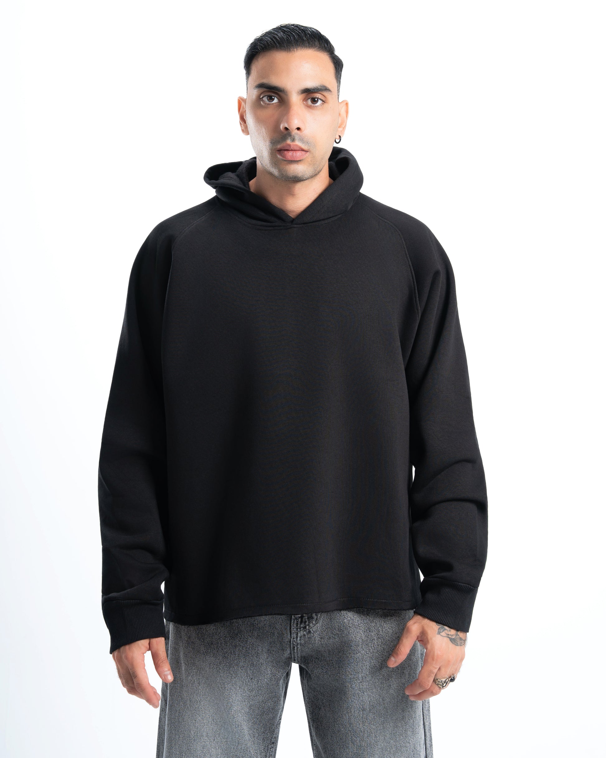 Mens Black Cropped Hoodie